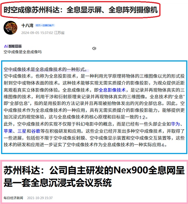 此外,公司在总部搭建了一套全息网呈的演示环境。苏州科达AI智能体KD-GPT是多模态、行业语言和图像视频生成等多个大模型的组合。