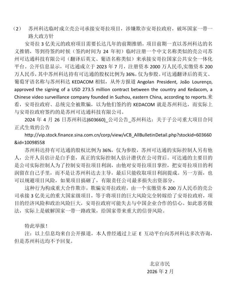 关于苏州科达安哥拉项目涉嫌欺诈的举报