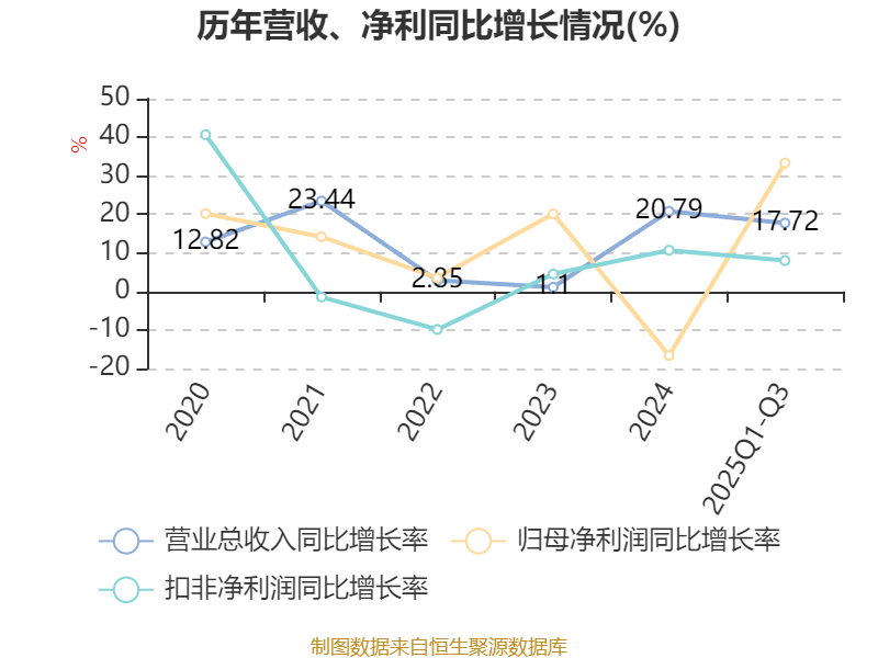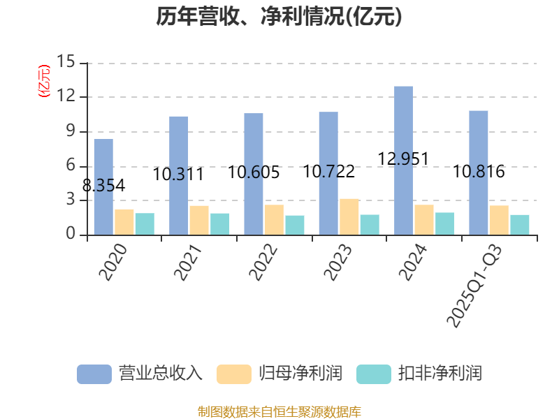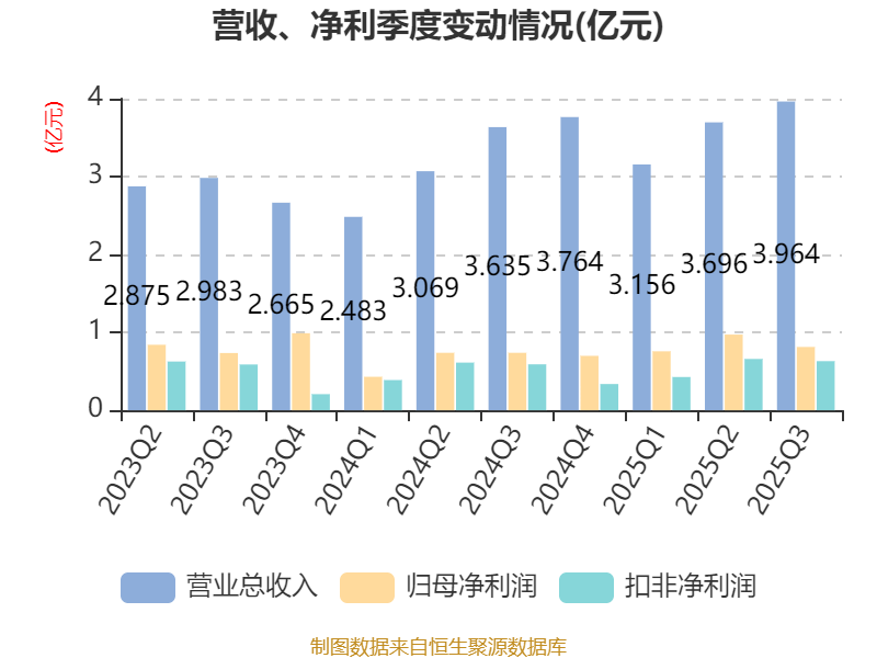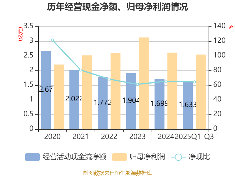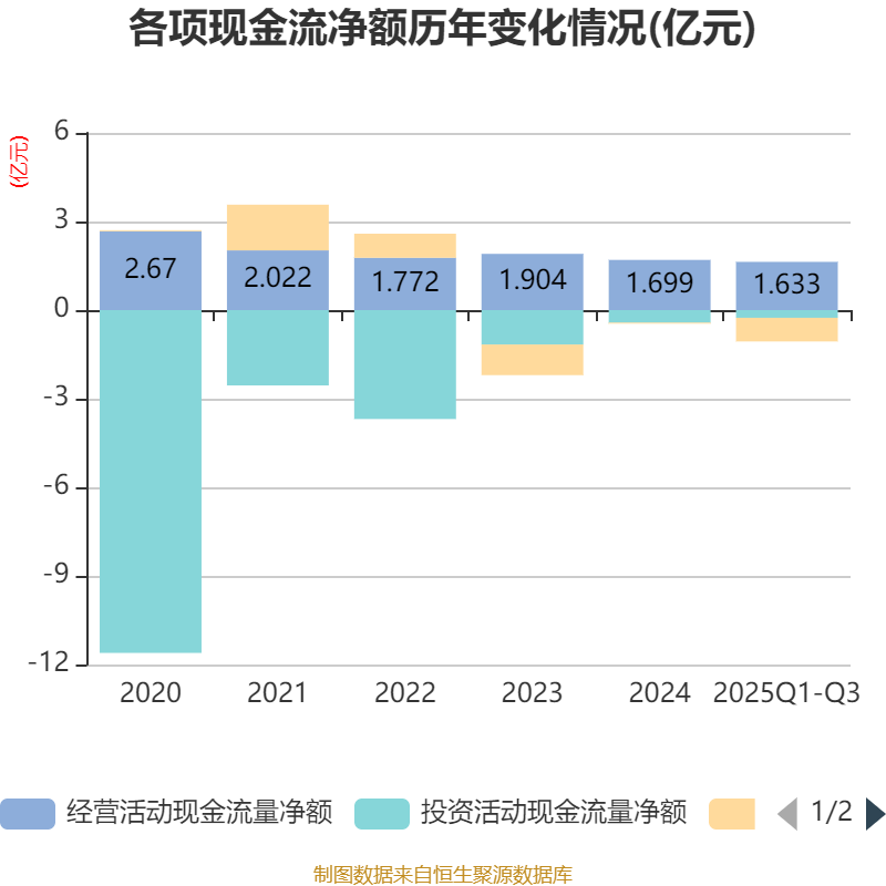 2025年前三季度,公司经营活动现金流净额为1.63亿元,同比增长10.71%;筹资活动现金流净额-8007.8万元,同比减少3313.64万元;投资活动现金流净额-2609.87万元,上年同期为-3811.93万元。