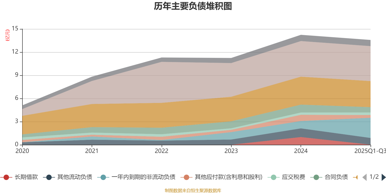 负债重大变化方面,截至2025年三季度末,公司一年内到期的非流动负债较上年末增加174.75%,占公司总资产比重上升3.69个百分点;长期借款较上年末减少99.5%,占公司总资产比重下降2.2个百分点;其他应付款(含利息和股利)较上年末减少56.69%,占公司总资产比重下降1.03个百分点;合同负债较上年末减少33.78%,占公司总资产比重下降0.78个百分点。