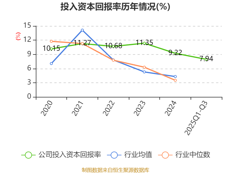 盈利能力方面, 2025年前三季度公司加权平均净资产收益率为9.08%,同比上升1.66个百分点。公司2025年前三季度投入资本回报率为7.94%,较上年同期上升1.25个百分点。