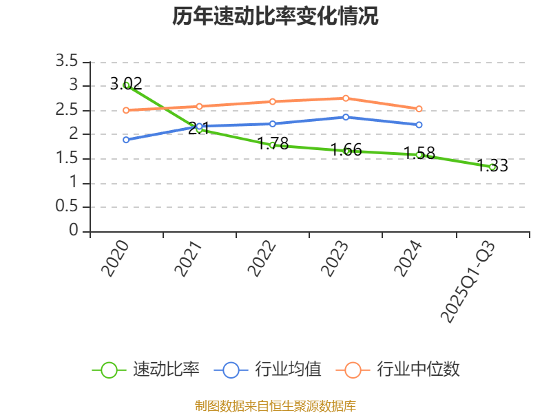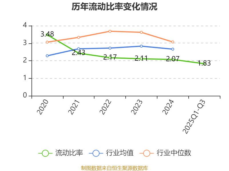 2025年前三季度,公司流动比率为1.83,速动比率为1.33。