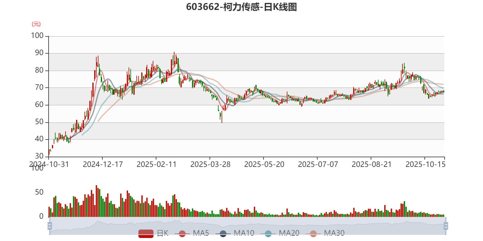 以10月30日收盘价计算,柯力传感目前市盈率(TTM)约为58.56倍,市净率(LF)约6.89倍,市销率(TTM)约13.01倍。