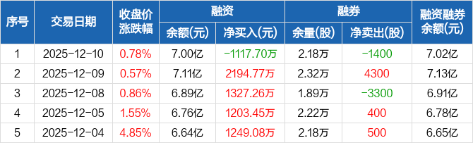 柯力传感:融资净偿还1117.7万元,融资余额7亿元(12-10)