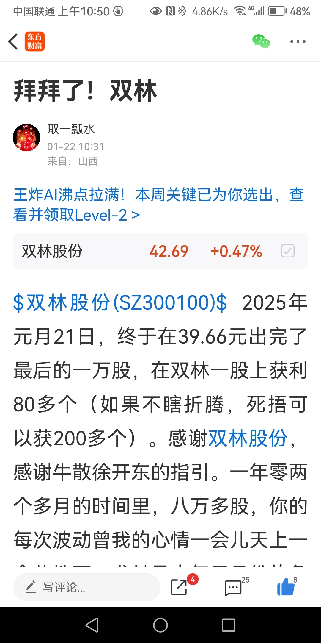 这是我元月22日,发在双林股吧的帖子截图,重点在第三张图。