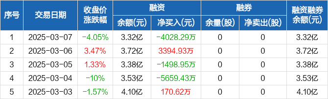 三祥新材:融资净偿还4028.29万元,融资余额3.32亿元(03-07)