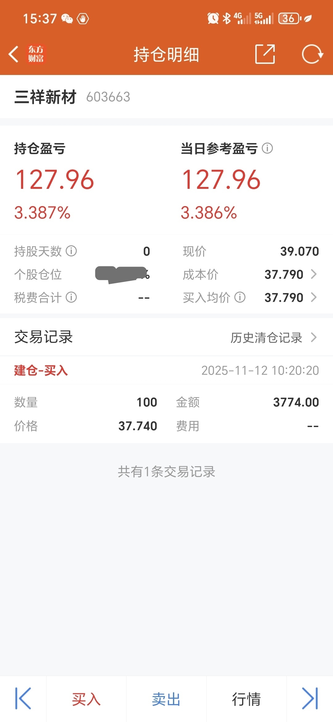 $三祥新材(SH603663)$ 涨这么多了不敢买,就买一手。没想到居然还能赚钱