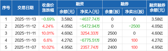 三祥新材:融资净偿还4637.74万元,融资余额3.58亿元(11-13)