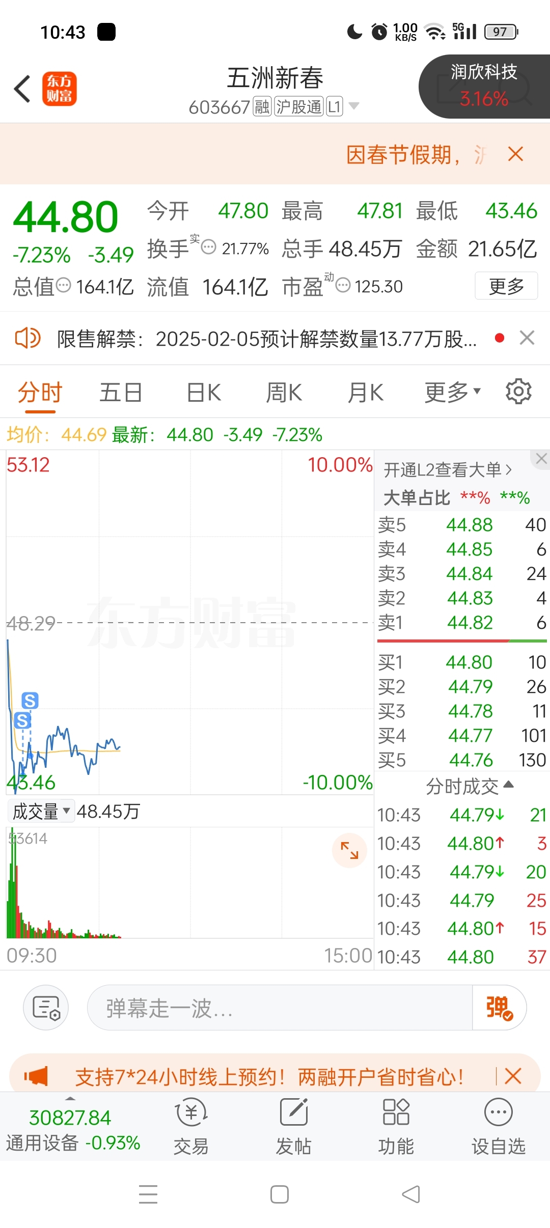 $五洲新春(SH603667)$ 水下八点五全仓卖了,还好周五跑了一半,不贪心是对的