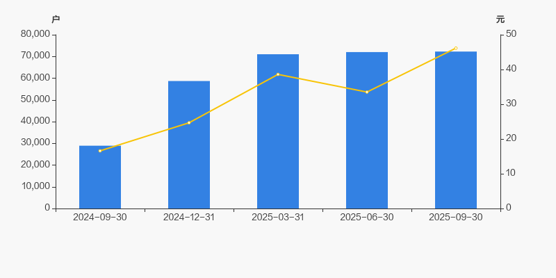 自2024年9月30日以来,公司股东户数连续4期上涨,截至目前增幅为149.91%。2024年9月30日至2025年9月30日区间股价上涨178.10%。