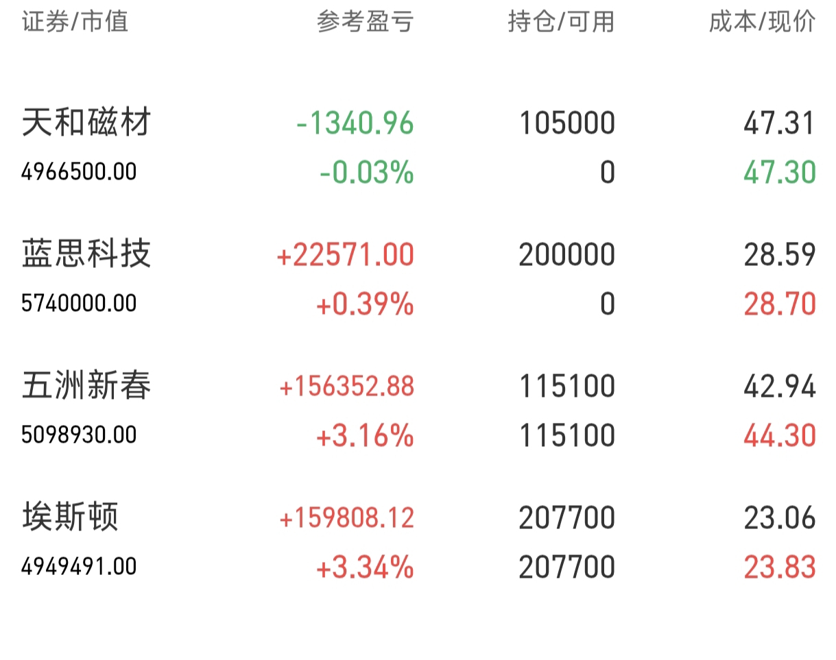 小兄弟你给点力啊!我埋伏两周了,吃不到肉啊!今天新开仓蓝思科技和天和磁搞点稀土对