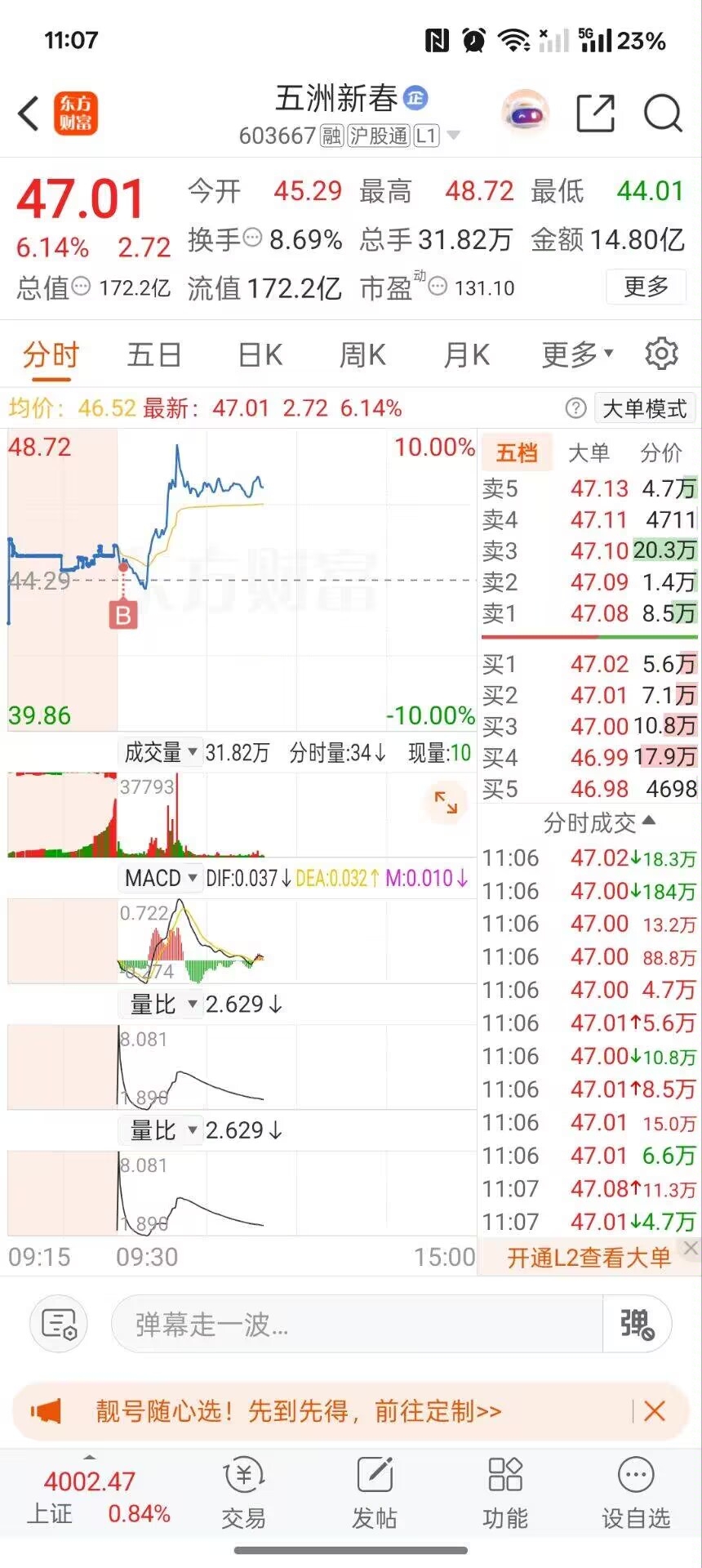 $五洲新春(SH603667)$ 早盘低吸位介入五洲新春也是迅速拉伸随后回落均线洗盘不必担心趋势还在的下午有有望封板可以加手仓