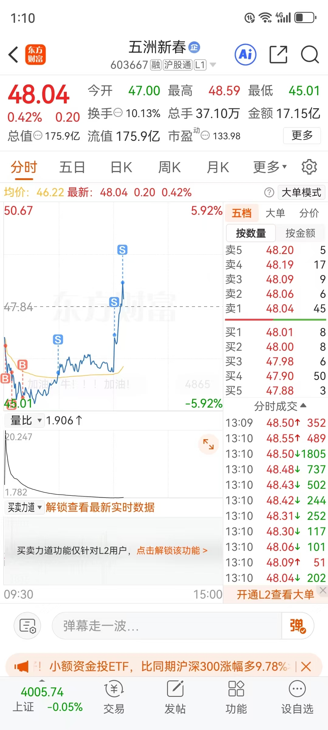 $五洲新春(SH603667)$ 今天的T结束,感谢主力