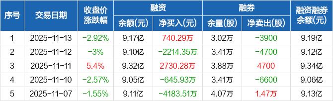 五洲新春:融资净买入740.29万元,融资余额9.17亿元(11-13)