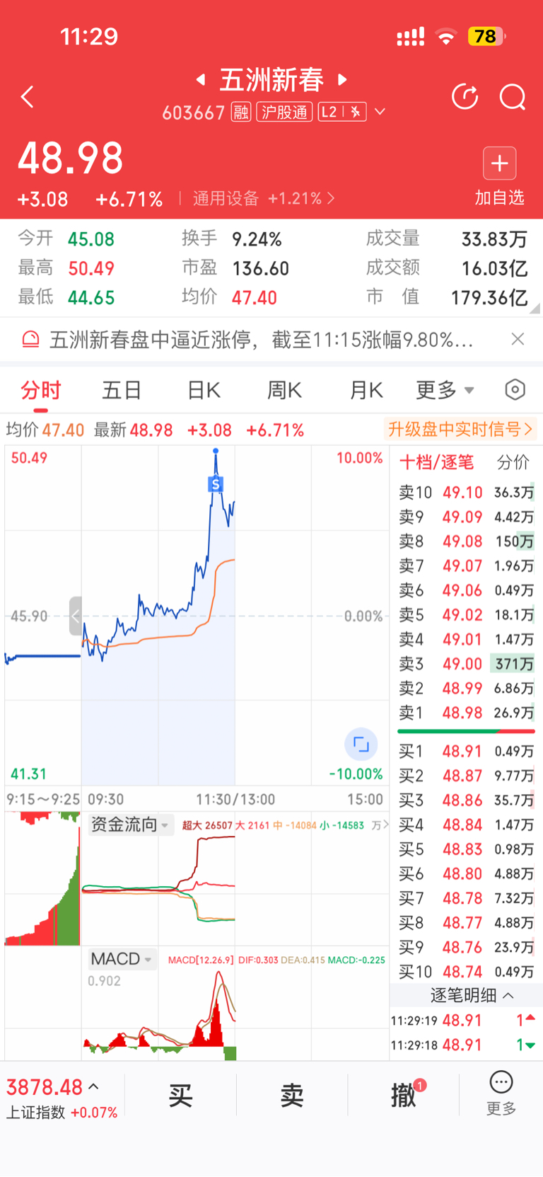 $五洲新春(SH603667)$ 涨停清仓,祝留下的发财
