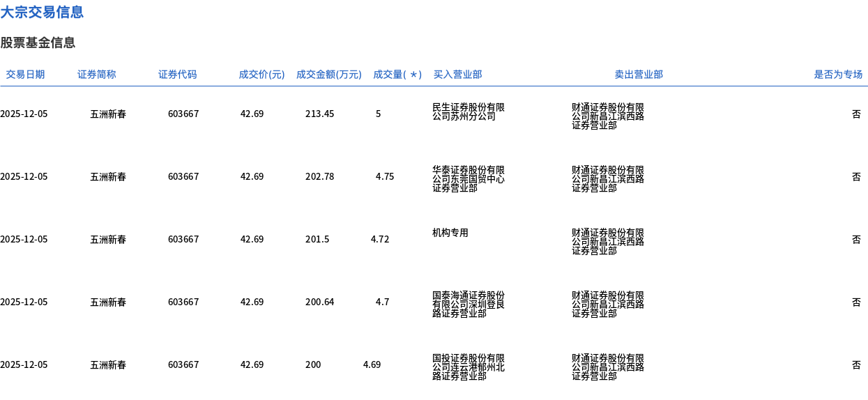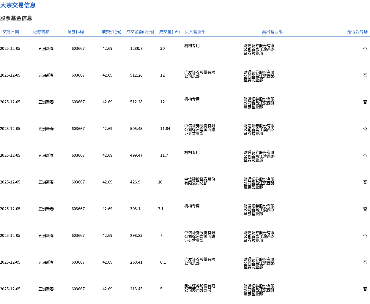 五洲新春今日大宗交易折价成交136.6万股 成交额5831.24万元