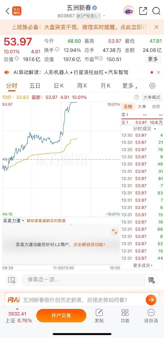 太漂亮了!五洲新春(603667)成功涨停!提示得还算及时吧?这就叫高效操作!