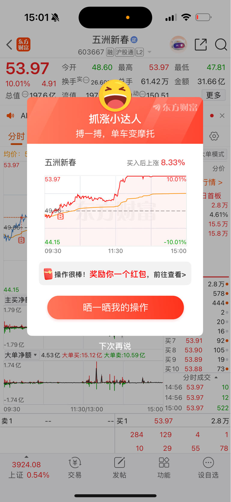 $五洲新春(SH603667)$ 感谢主力 从来没在五洲新春上亏过钱