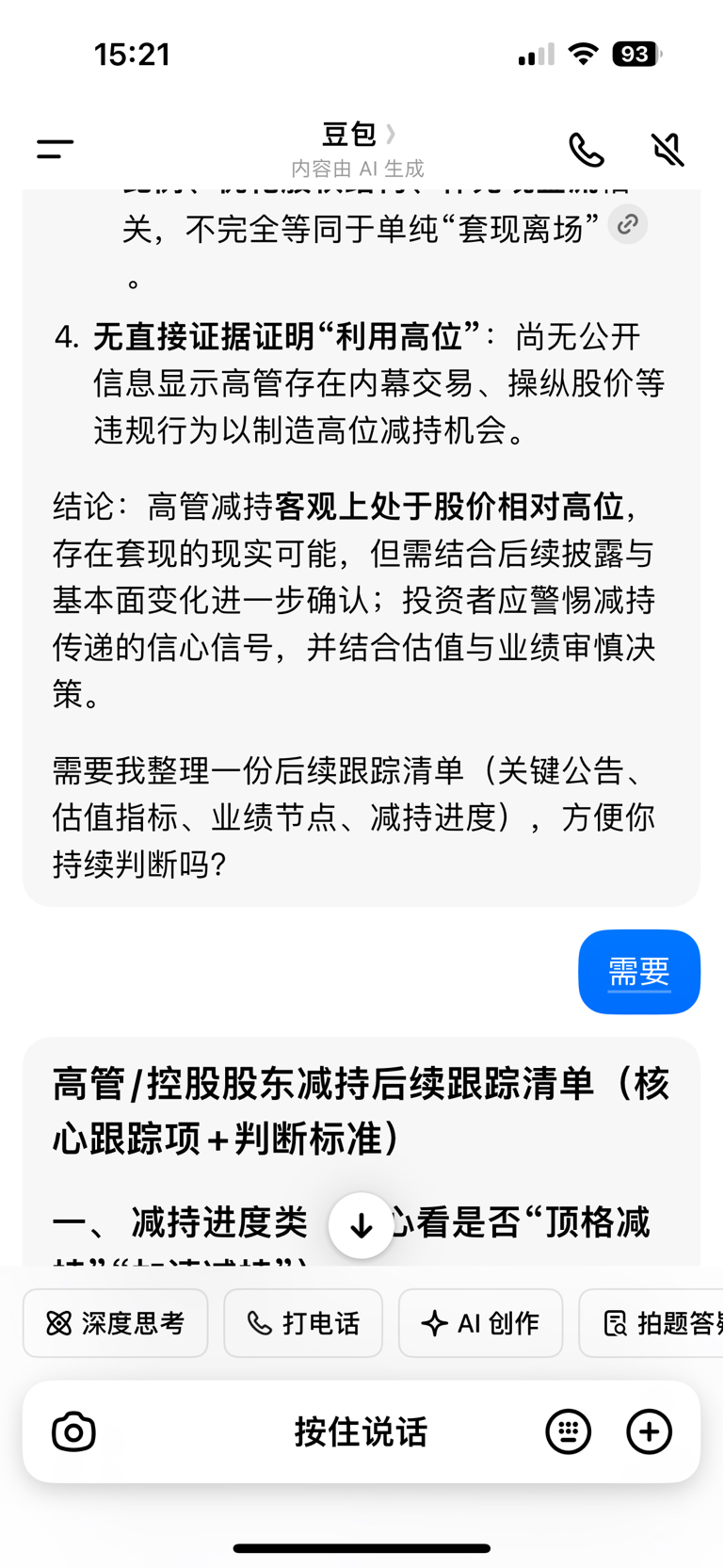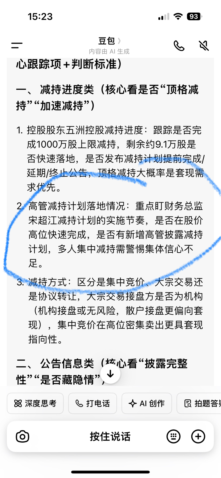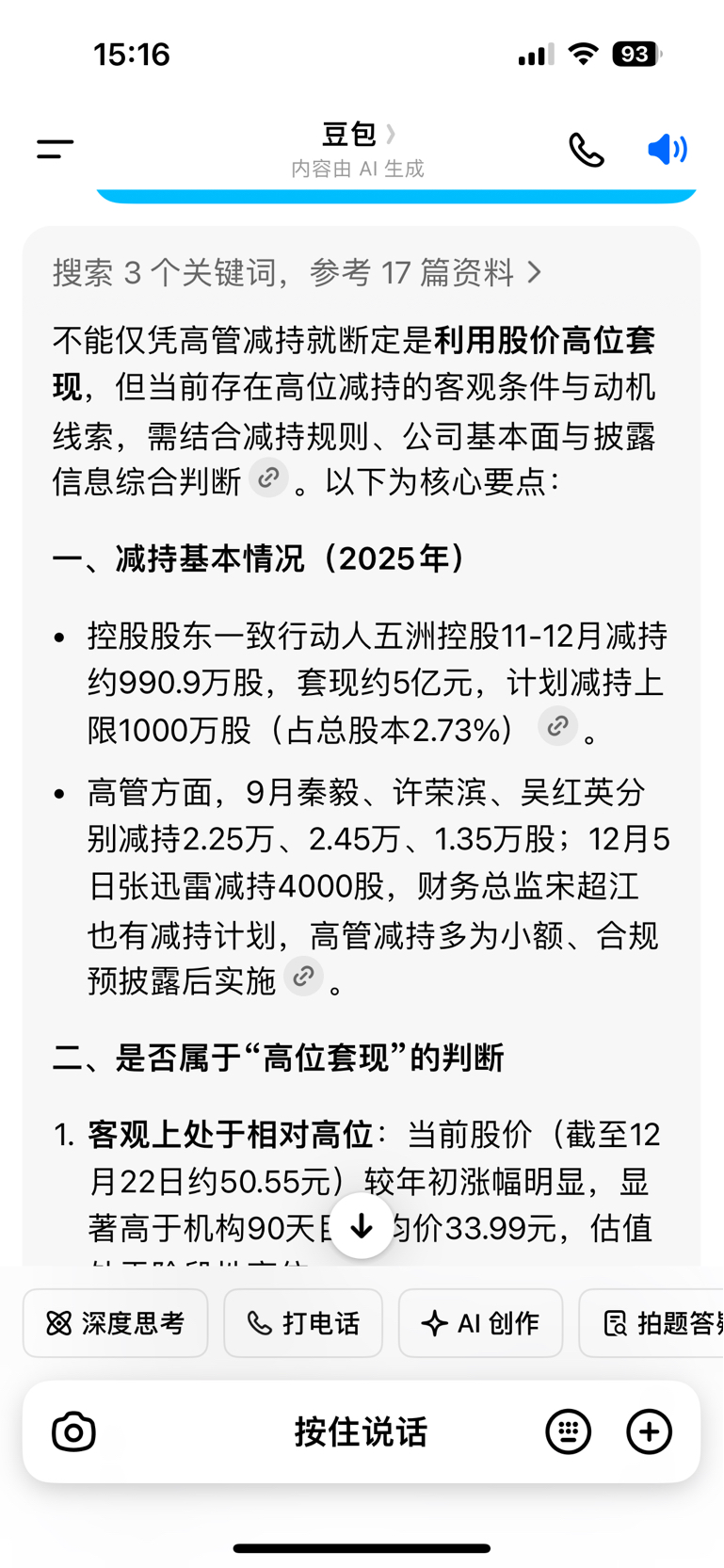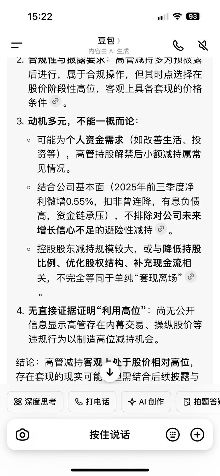 关于最近减持,豆包都说存在高危套现的嫌意,说高管对公司未来发展没有信心。反正我明