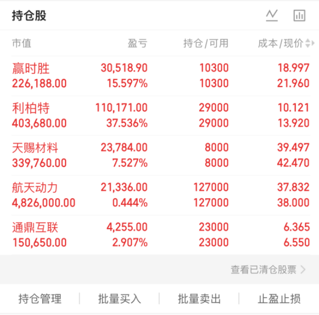 天赐材料,站上均线,但支撑作用不够明显,毕竟粘合向上的情况是有一点牵强附会的,伴随着成交量放大,我认为明天还是回调后的一个情况,继续持有。