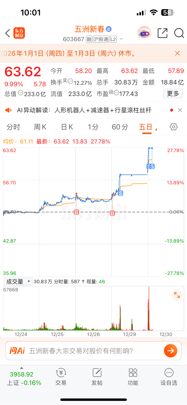 $五洲新春(SH603667)$ 祝车上的兄弟发财,小弟先走一步。