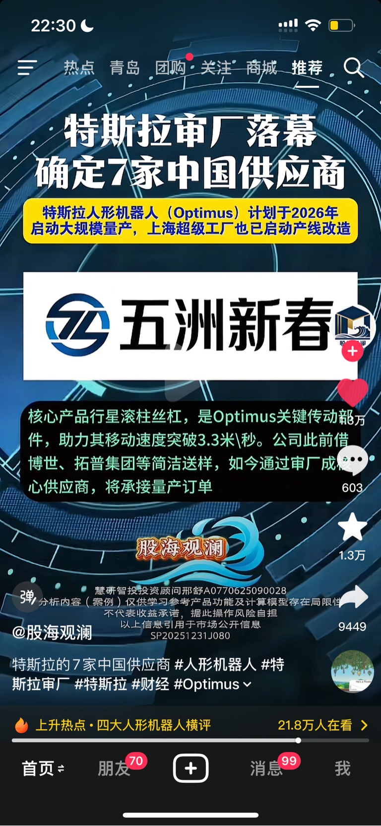 $五洲新春(SH603667)$ 特斯拉核心供应商
