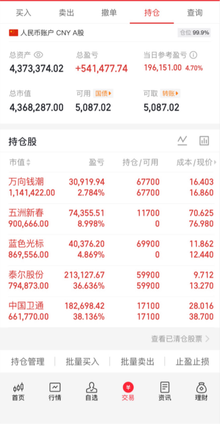 【最新实盘日志】今日建仓当前持仓=泰尔股份万向钱潮今天卖出-郑重声明:本贴仅为个