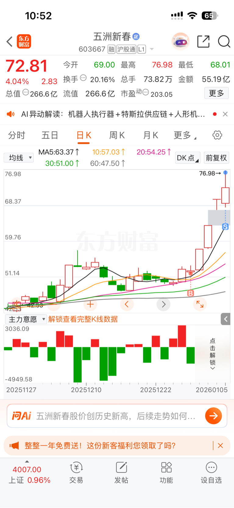 $五洲新春(SH603667)$ 感谢五洲新春 感谢主力 早盘下车了 留下的发财 我已经赚够了