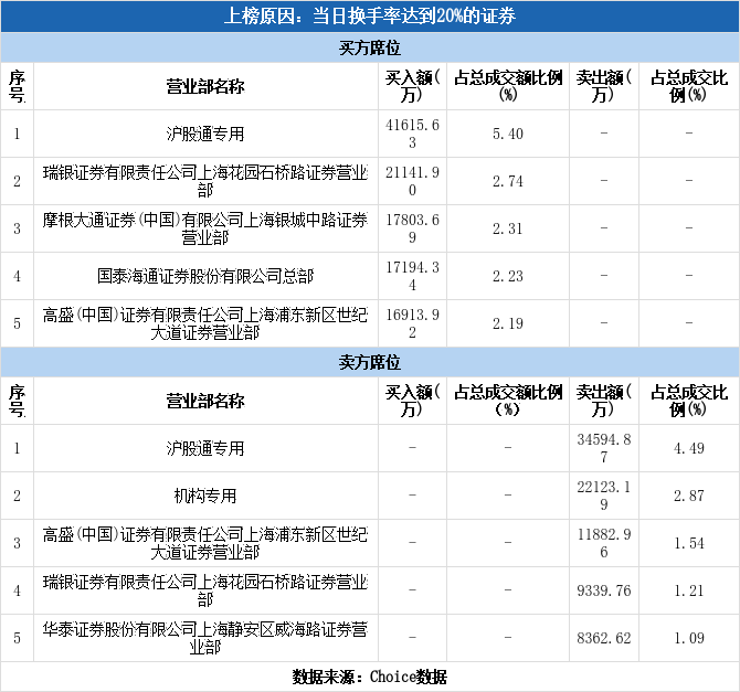 上交所2026年1月5日交易公开信息显示,五洲新春因属于当日换手率达到20%的证券而登上龙虎榜。五洲新春当日报收74.20元,涨跌幅为6.03%,换手率28.19%,振幅12.82%,成交额77.07亿元。