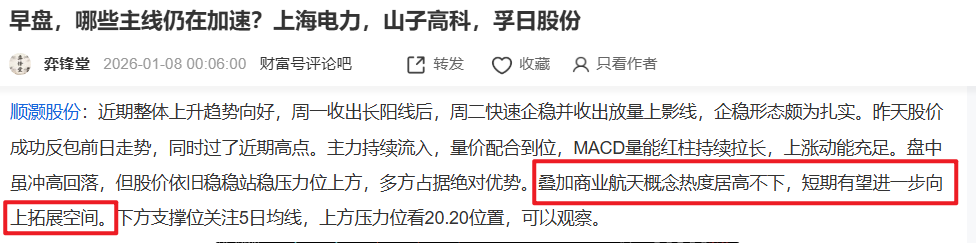 顺灏股份:近期上升趋势相当不错,股价持续震荡向上,趋势票特征显著。昨天更是走出加速上升行情并成功封板,量价配合到位,盘中释放大量压力,主力大幅流入,换手率健康,MACD量能红柱大幅拉长。叠加商业航天概念持续活跃,短期延续性极强。下方支撑位关注19.5附近,第二支撑位关注5日均线。