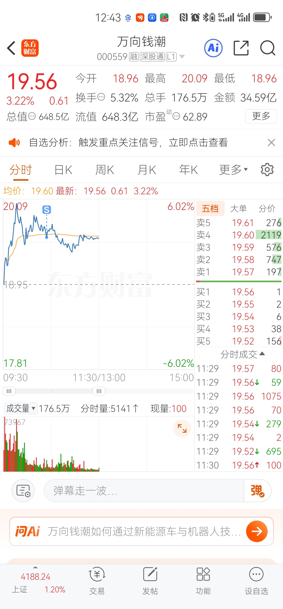 $五洲新春(SH603667)$ $万向钱潮(SZ000559)$ 先走了,去五洲新春了,希望我做的没错!