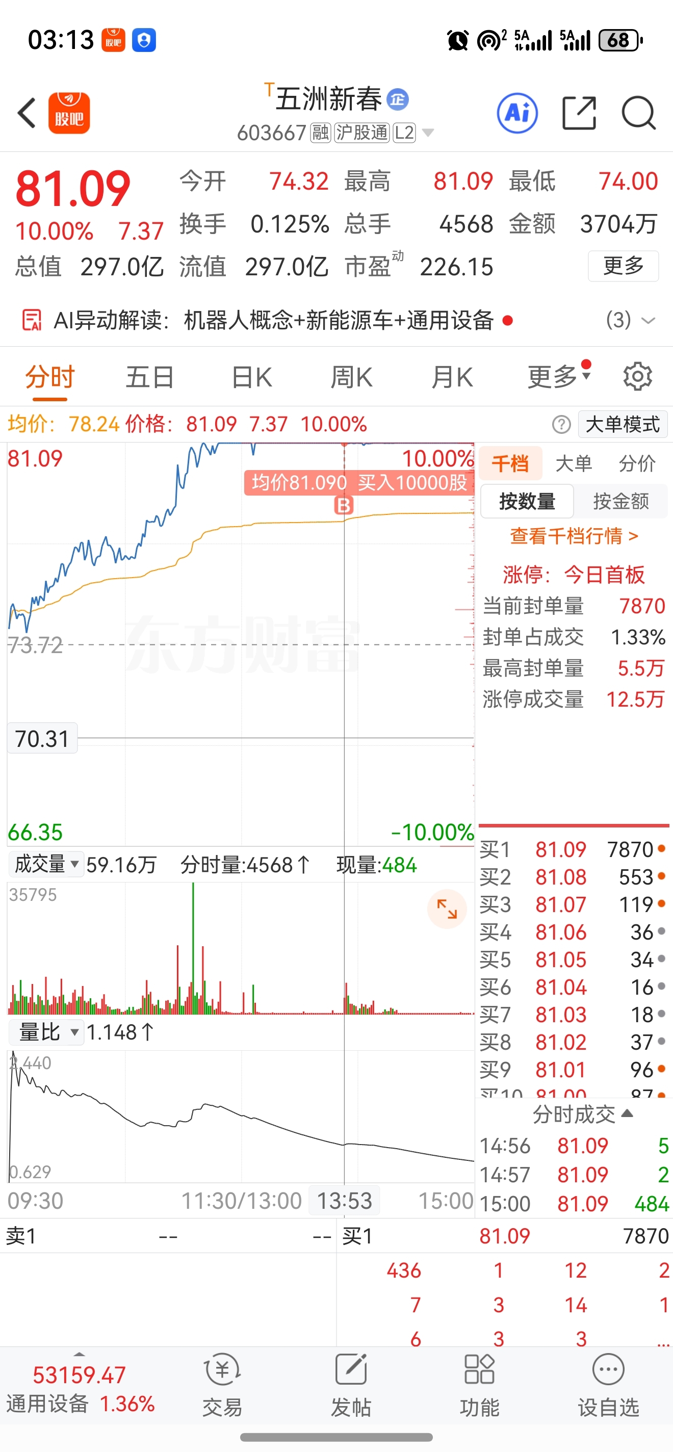 $五洲新春(SH603667)$ 回封的时候板上拿了一笔,位置不错,量能也可以,周末消息发酵一下,妥妥的