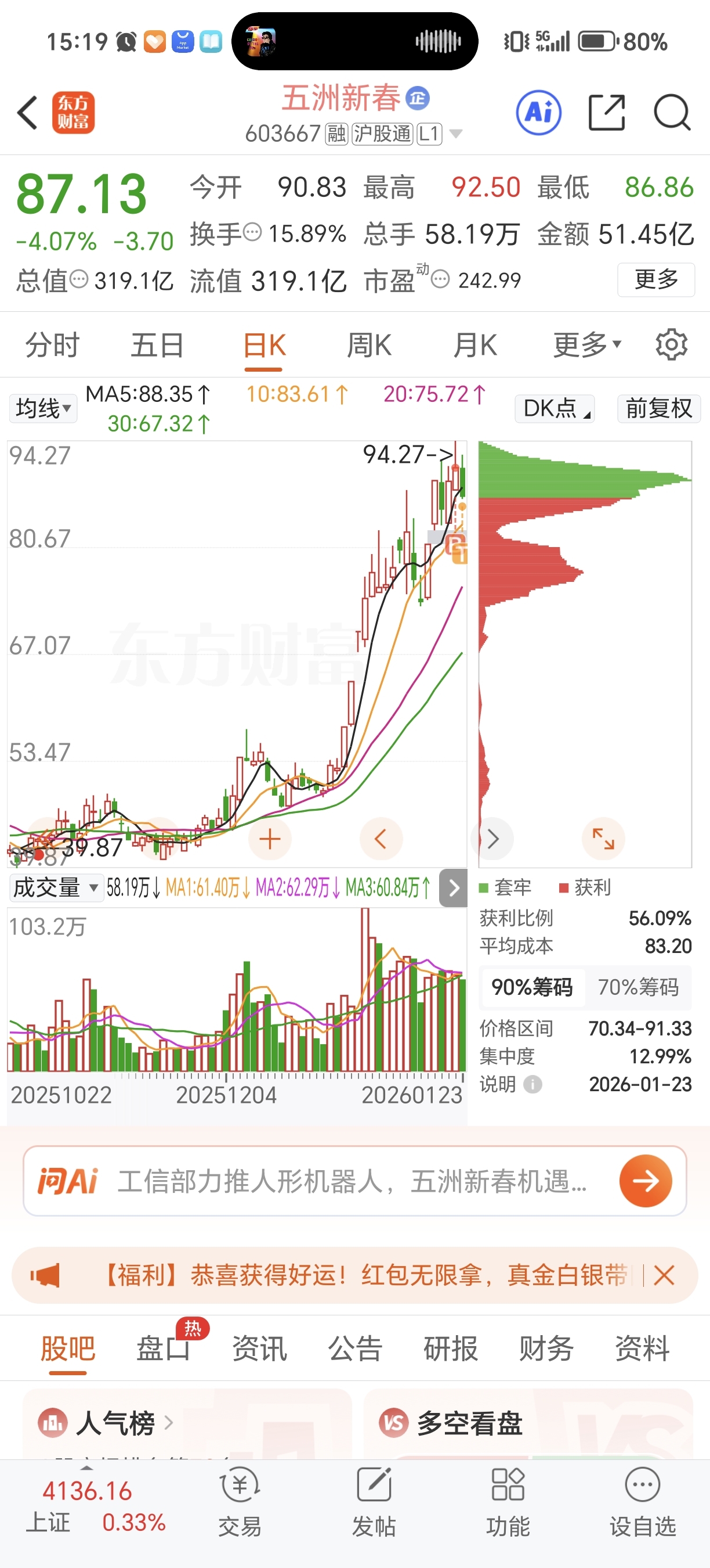 $五洲新春(SH603667)$ 依然看好!T了一把!