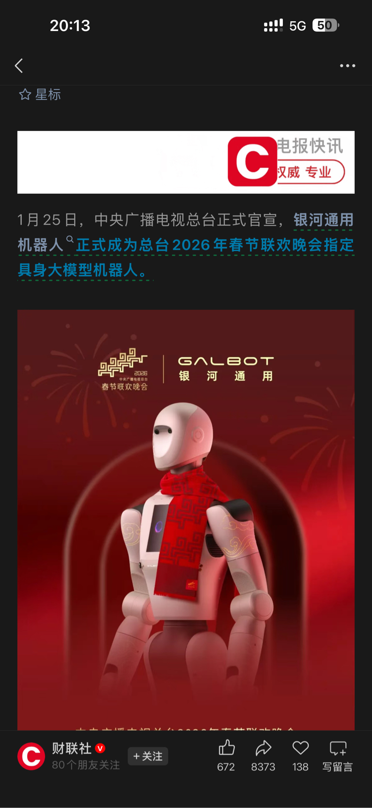 大利好来了,五洲新春和春晚挂上了,银河通用上春晚,五洲是供应商