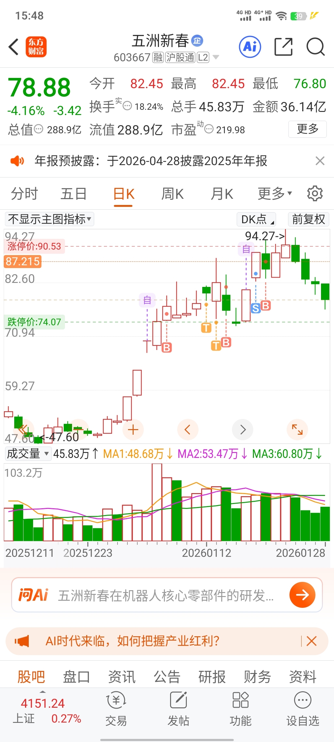 $五洲新春(SH603667)$ 主力大哥,明天再跌我就抄底了哈,我绝对的坚定分子,绝不会被洗出去的,唉……去年的得润电子5个跌停都没走,硬是拿到回本。