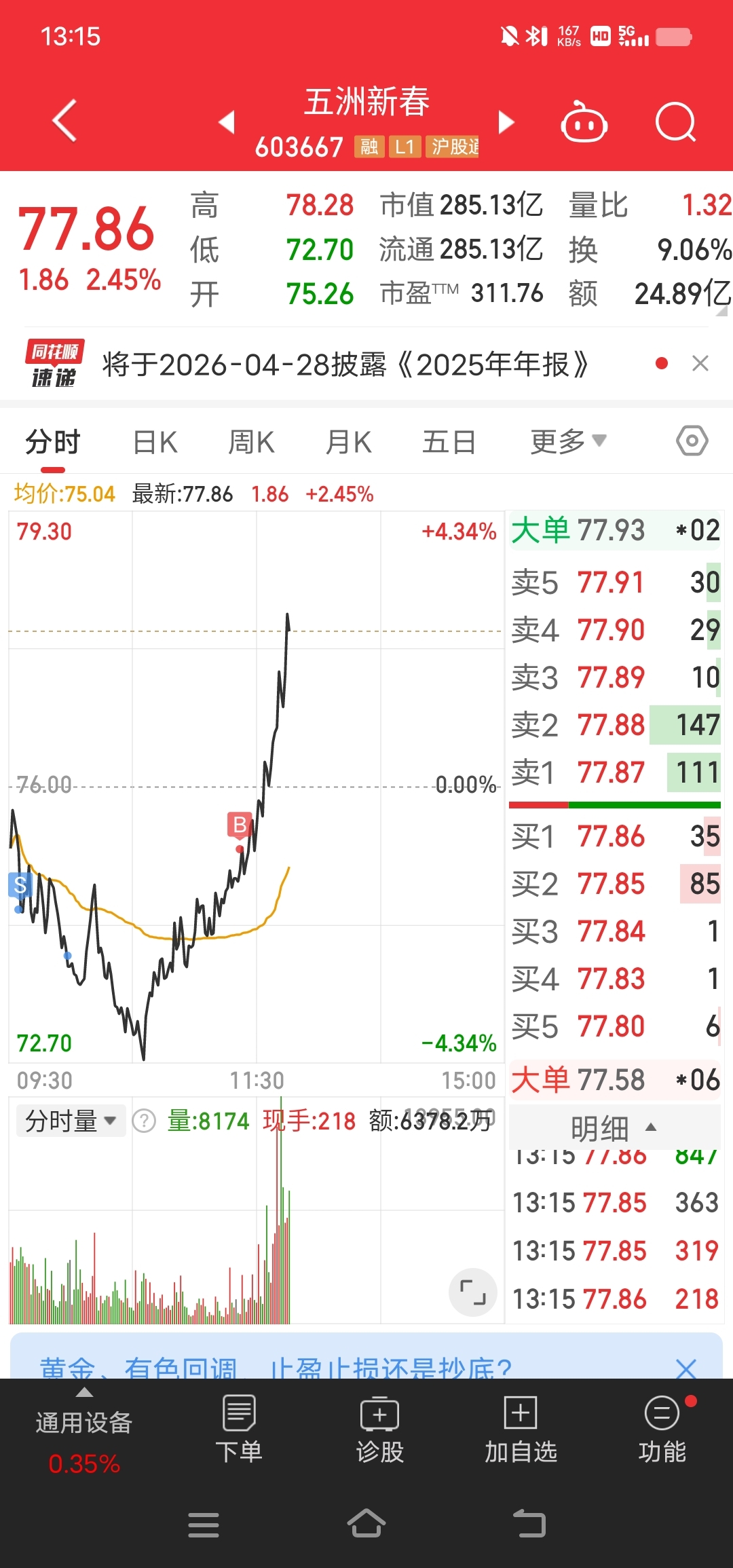 $五洲新春(SH603667)$ 果然,一卖就起飞