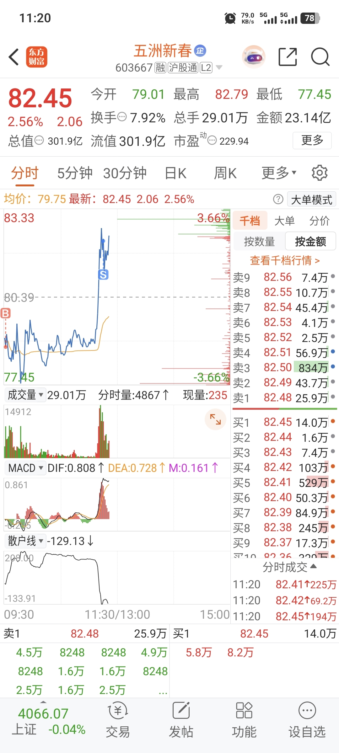 $五洲新春(SH603667)$ 好消息,T了4个点,坏消息,有点T飞了