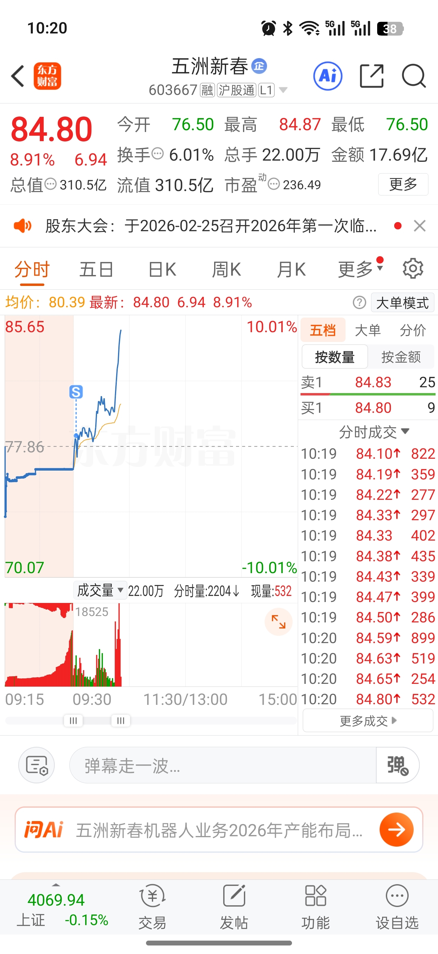 $五洲新春(SH603667)$ 卖了你补山子去了,可惜t飞了
