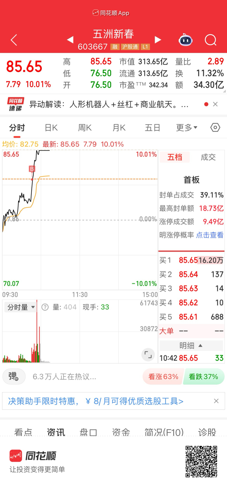 $五洲新春(SH603667)$ 能不能连板到春节