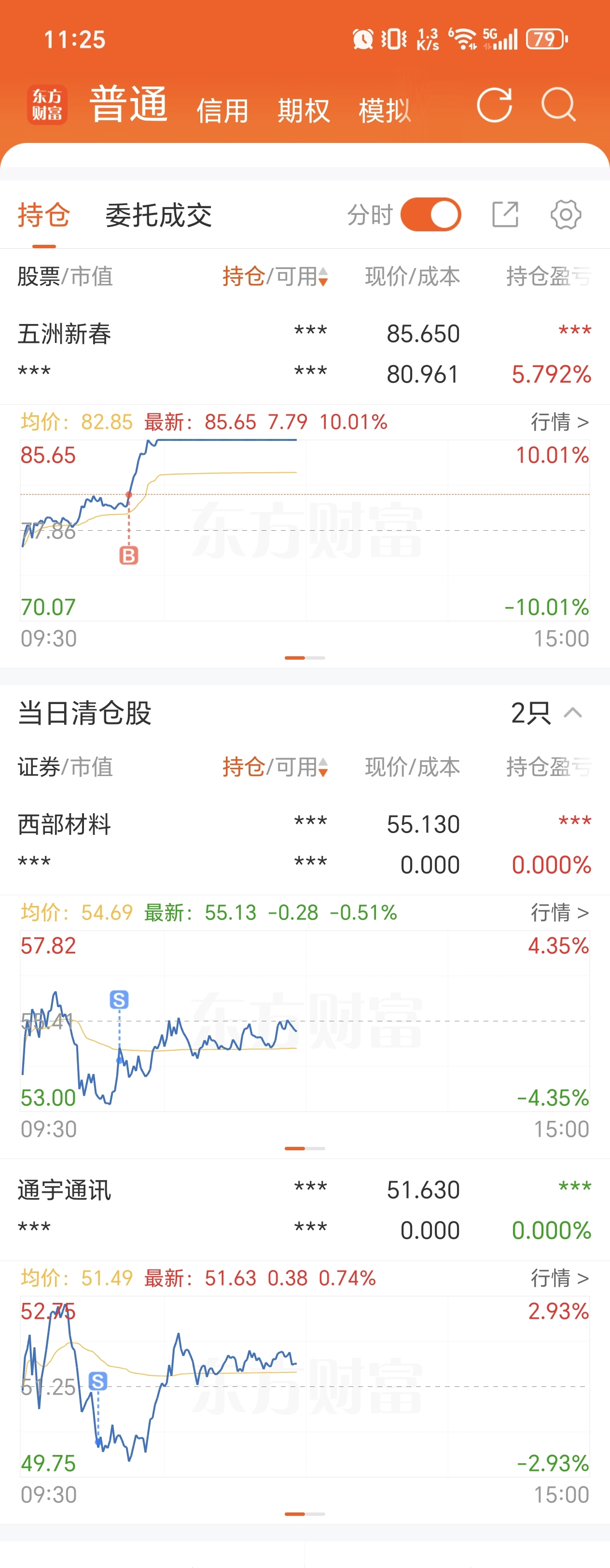 上午开盘商业航天的巨力强势拉板有所回流就格局了一会,但是板块内没有其它人站出来支援巨力,西部率先跳水。随后巨力开板,水下就把通宇光速割掉了(肉疼),西部等了一个小反弹也止盈掉了。然后就开始盘面的观察找机会,自选里面航天gg,ai继续被按,光伏(不敢进),机器人(红彤彤的且调整多日)。五洲两笔4000手大单点火就直接满仓干了