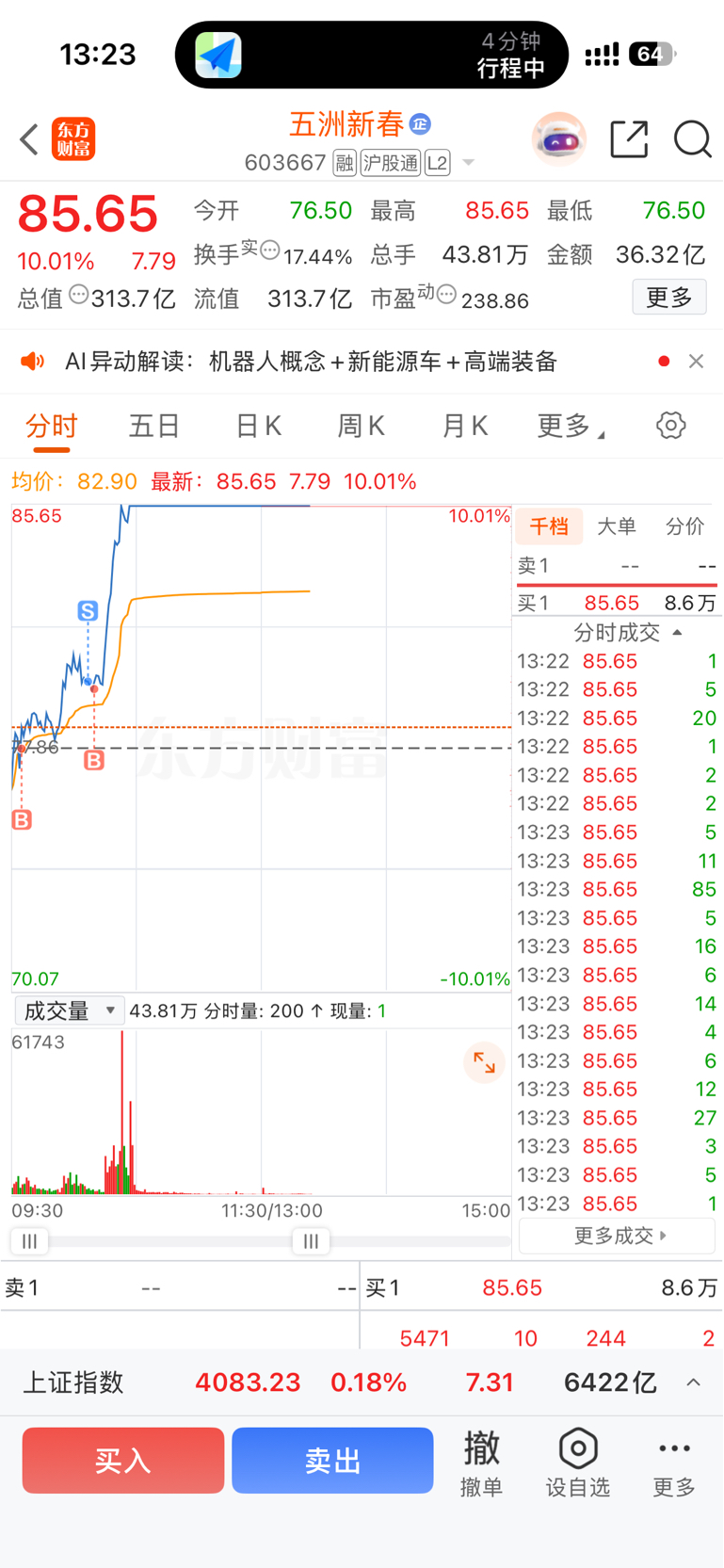 $五洲新春(SH603667)$ 一看情况不对抓紧买了回来,还t了5毛钱