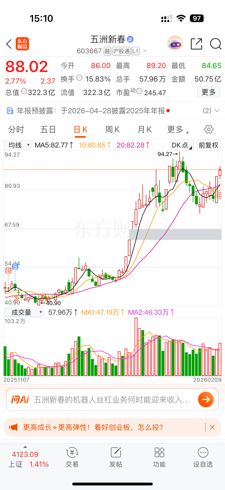 $五洲新春(SH603667)$ 之前卖飞了,我又来了