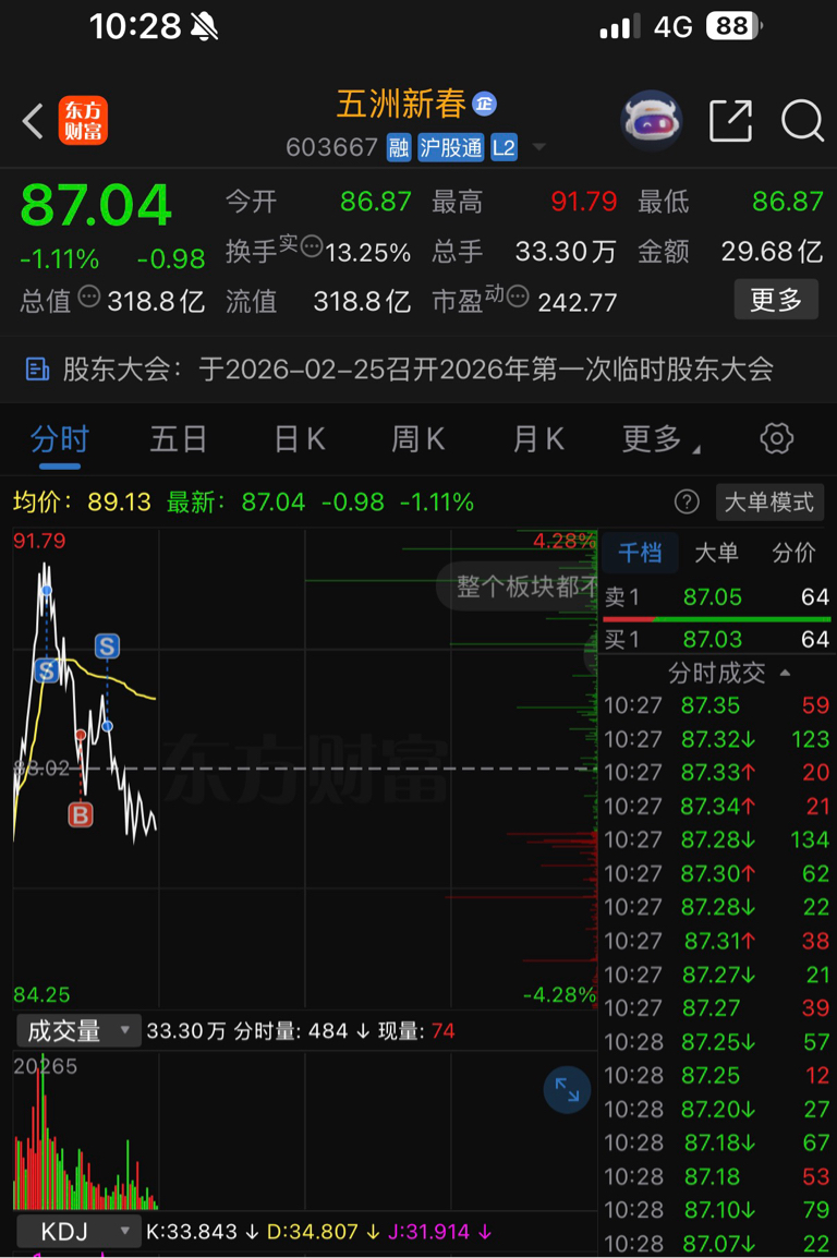 $五洲新春(SH603667)$ 还好早上还t了一点回去,不然说我踏空了多丢人.