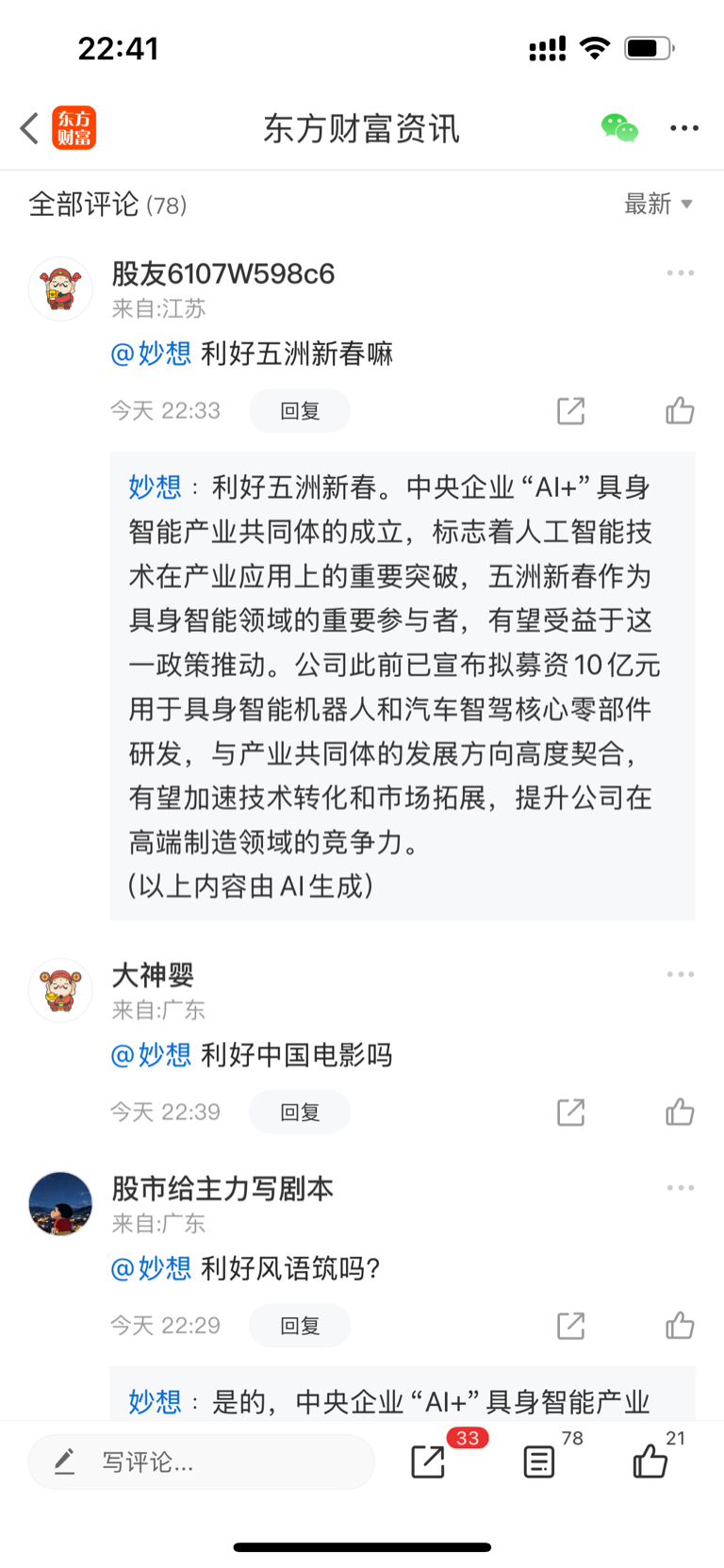 温馨提示: 1.根据《证券法》规定,禁止编造、传播虚假信息或者误导性信息,扰乱证券市场;2.用户在本社区发表的所有资料、言论等仅代表个人观点,与本网站立场无关,不对您构成任何投资建议。用户应基于自己的独立判断,自行决定证券投资并承担相应风险。《东方财富社区管理规定》