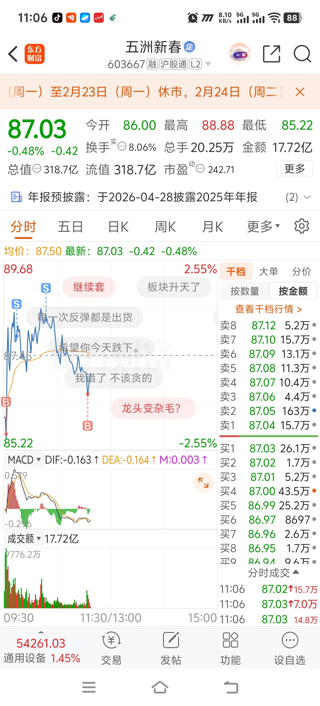 $五洲新春(SH603667)$ 真难,每天t几千块生活费,还不够你跌的