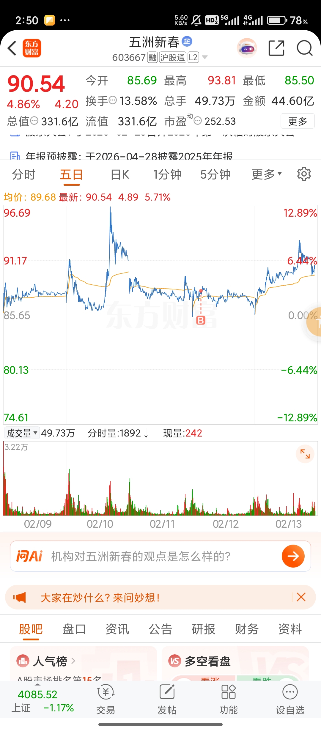 $五洲新春(SH603667)$ 受大盘影响,走的没有太出色但是也不算差。继续持有。
