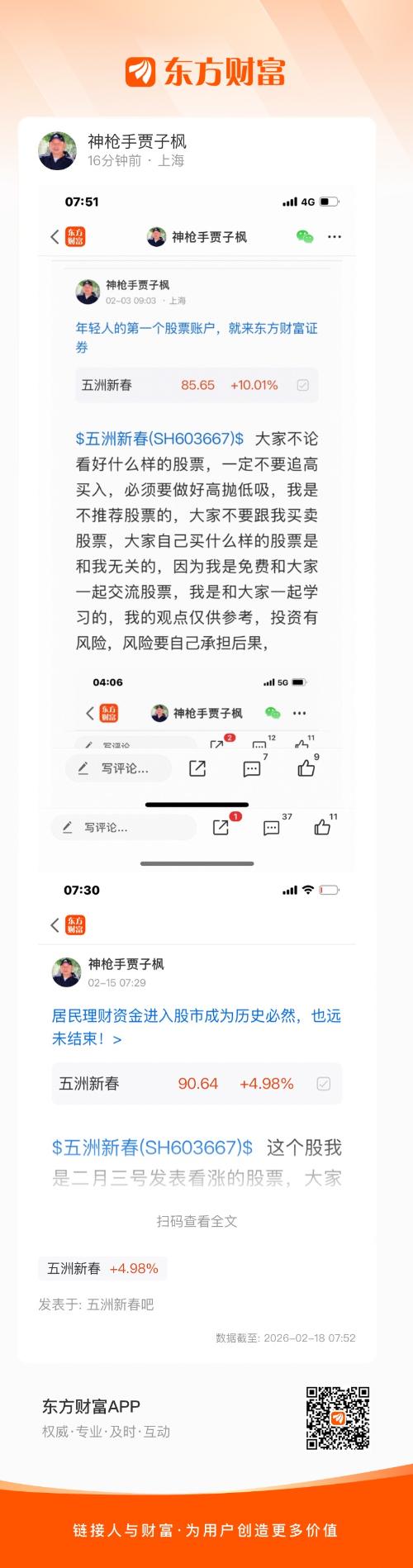 $五洲新春(SH603667)$ 这个股是我二月三号发表文章看好的股票,大家不要追高买入,必须要做好高抛低吸,我是不推荐股票的,大家不要跟我买卖股票,大家自己买什么样的股票是和我无关的,因为我是免费和大家一起交流股票,我是和大家一起学习的,我的观点仅供参考,投资有风险,风险要自己承担后果,
