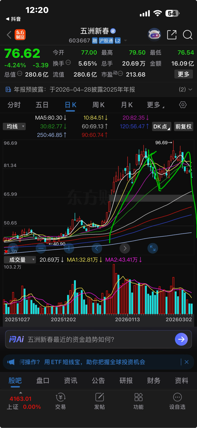 $五洲新春(SH603667)$ 这么明显的M顶还看不出来???
