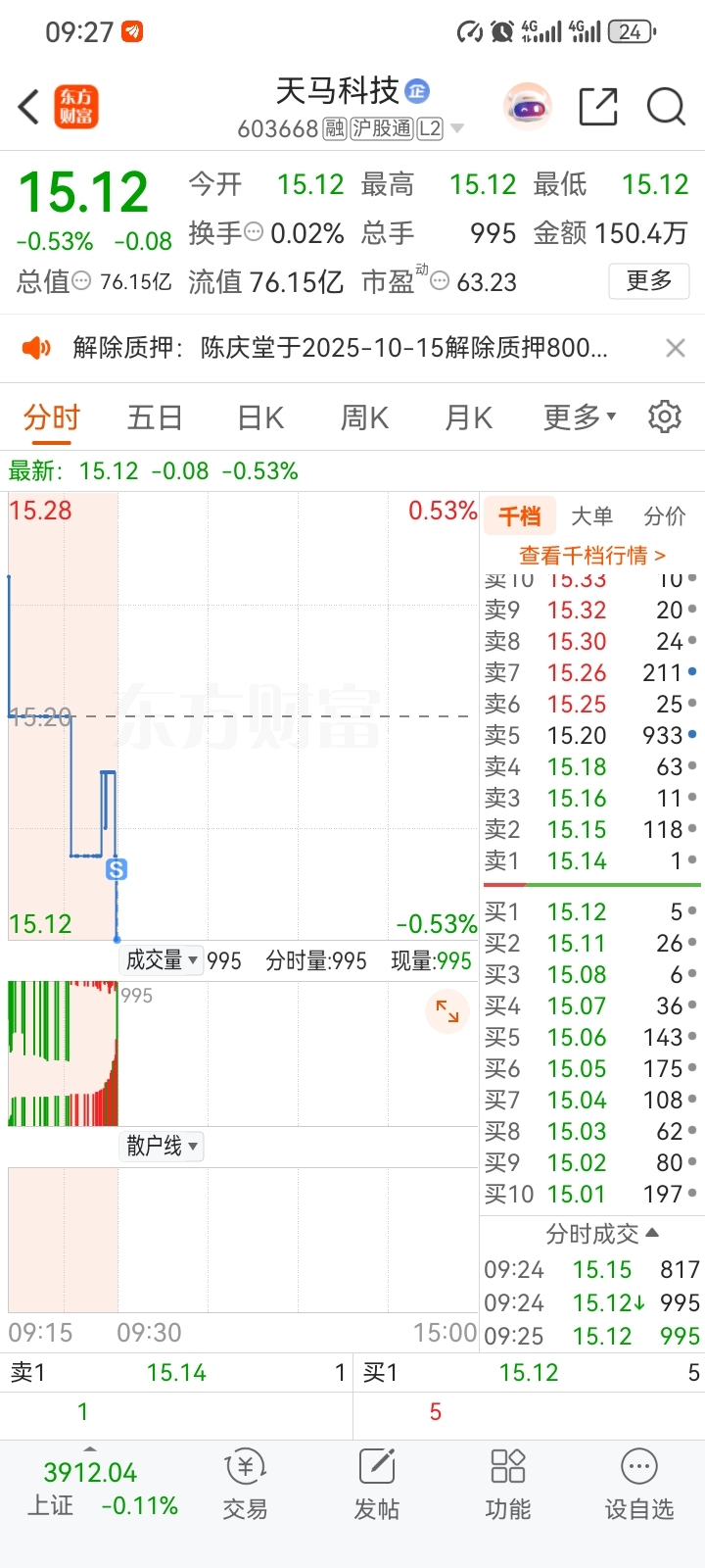 $天马科技(SH603668)$ 我已经卖掉了,就等尾盘砸盘买了