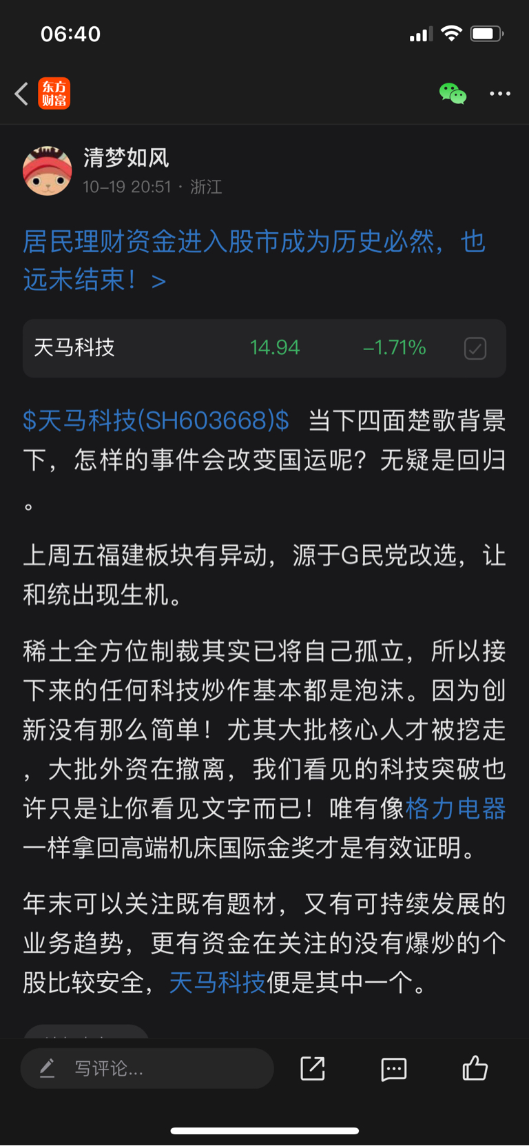 $天马科技(SH603668)$